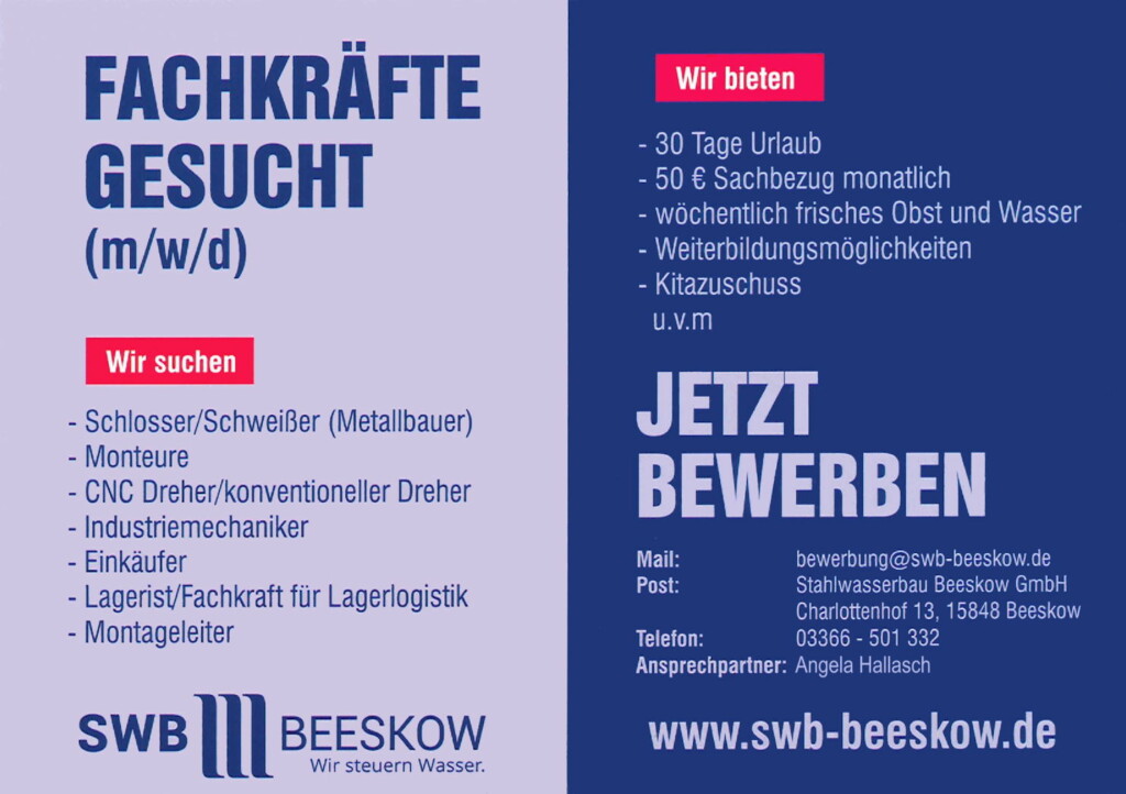 Die Stahlwasserbau Beeskow GmbH sucht zum nächstmöglichen Eintrittstermin: